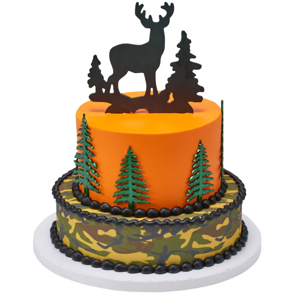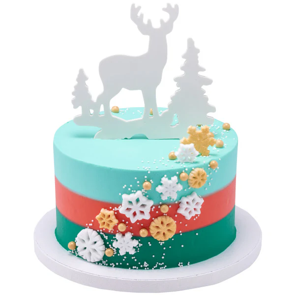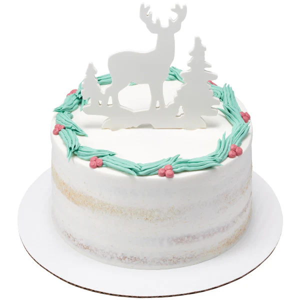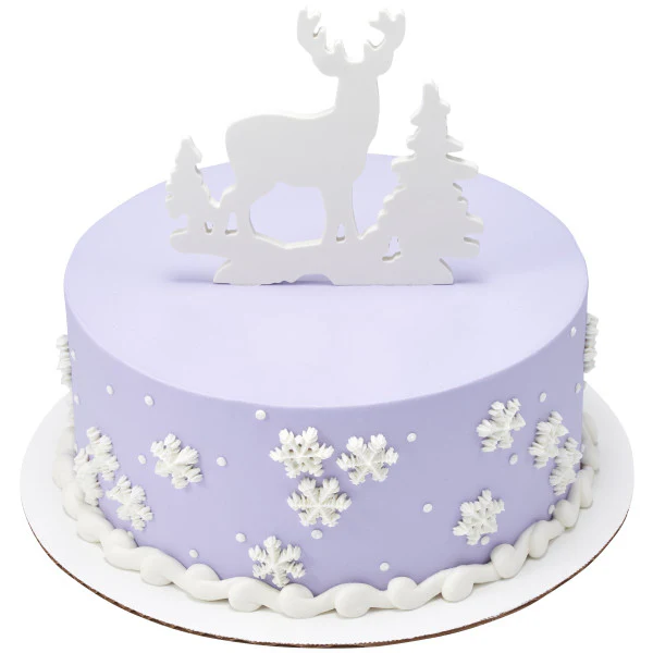Celebrate the season with a classic winter deer and pine trees. Simple in design, this piece is a great addition to your winter cakes; or airbrush for a custom hunting celebration! Gum paste is safe for food contact and not intended to be eaten. Due to the nature of this product, some breakage may occur and the product has been priced accordingly.